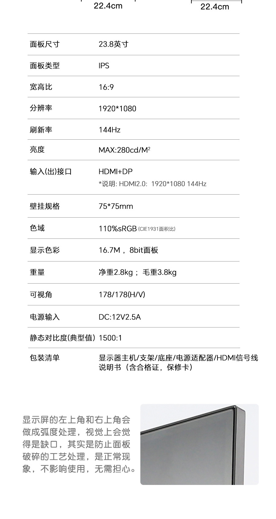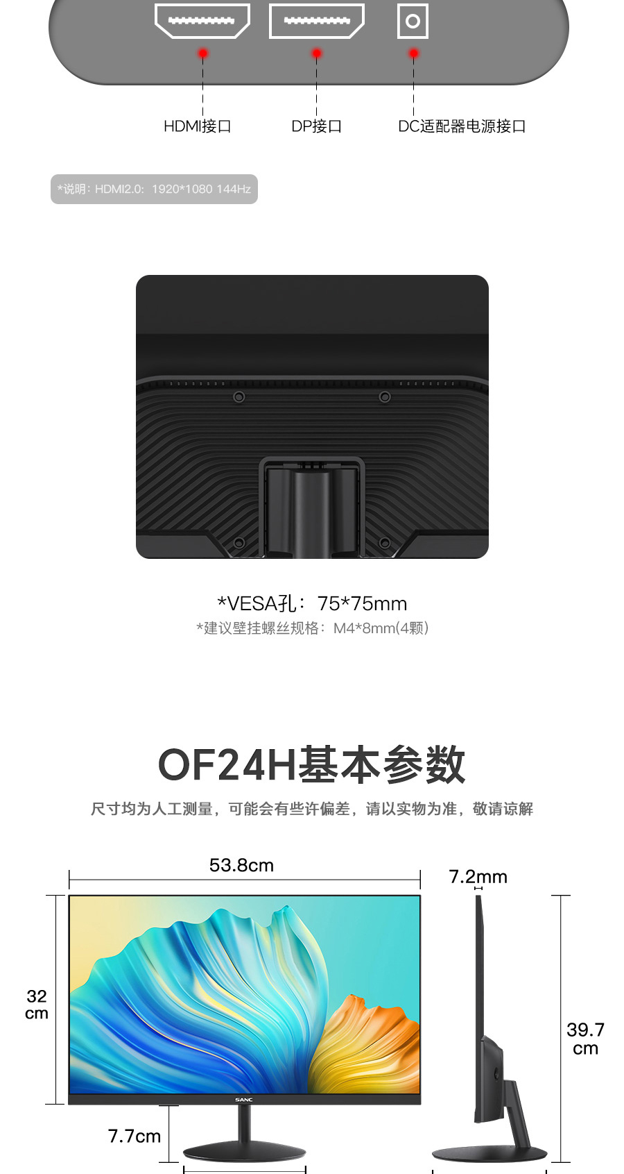 VESA孔位:75*75mm
