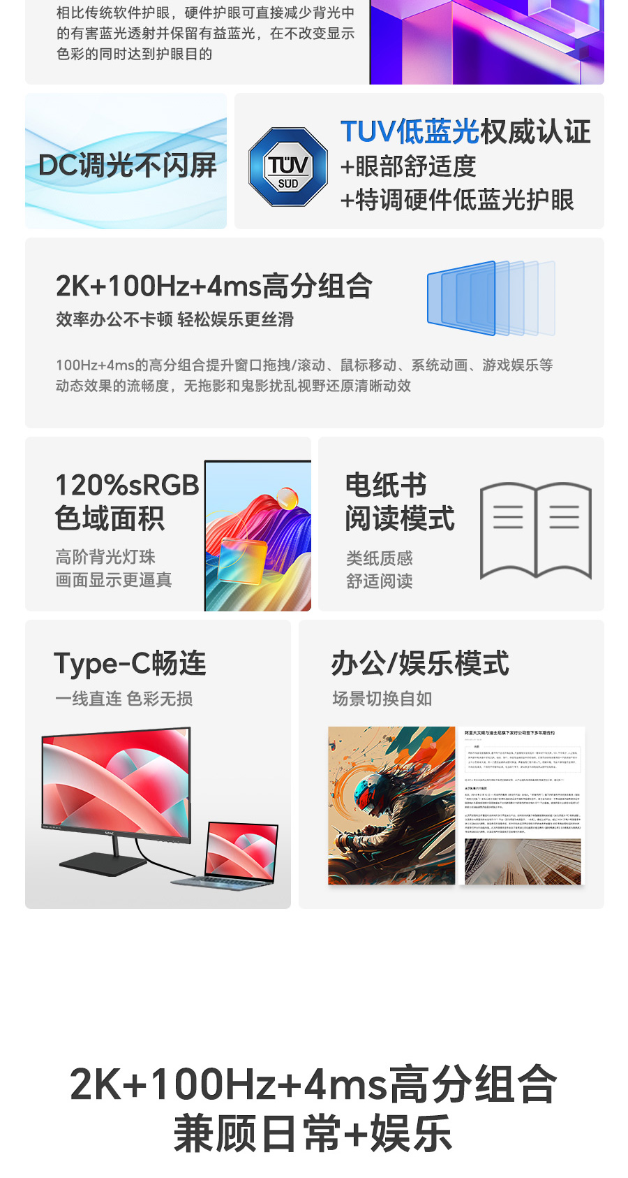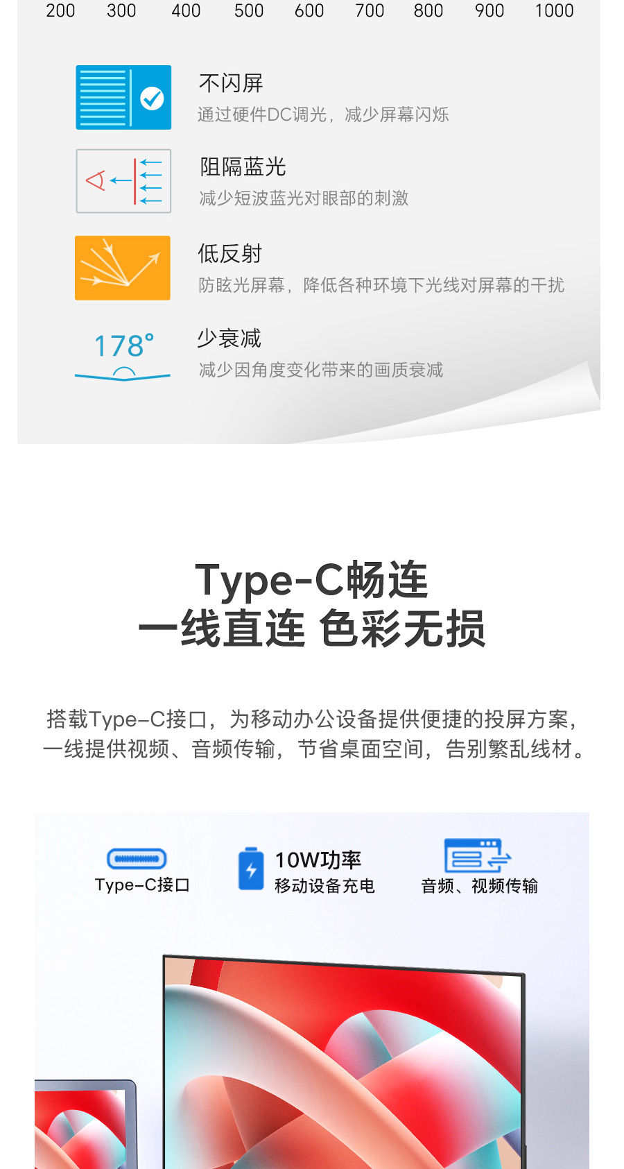 Type-C:2560*1440 100Hz 8bit 支持10w充电