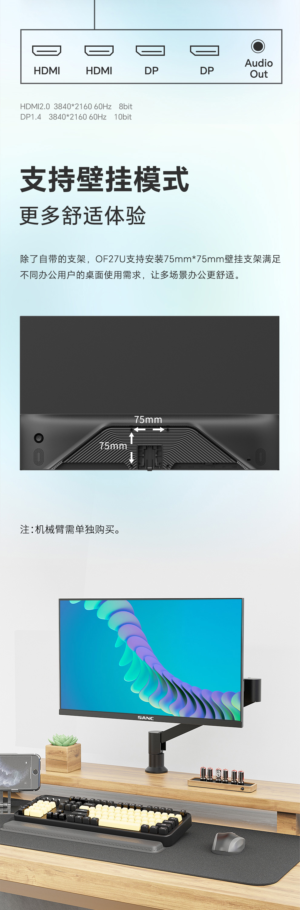 输出(入)接口说明:2HDMI+2DP+Audio out