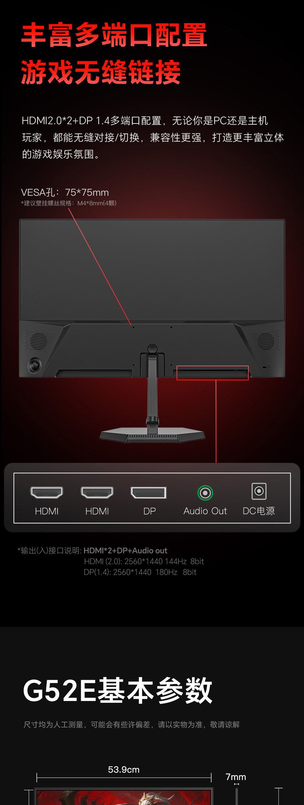 输出(入)接口说明: 2*HDM+DP+Audio out