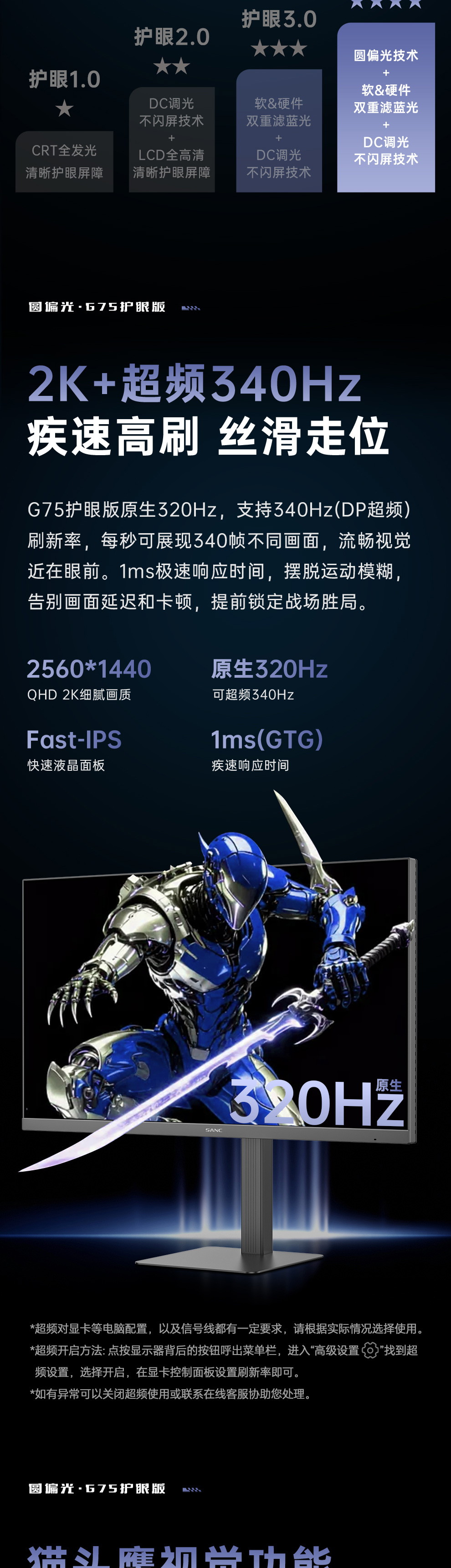 亮点功能:新一代圆偏光技术/猫头鹰视觉功能