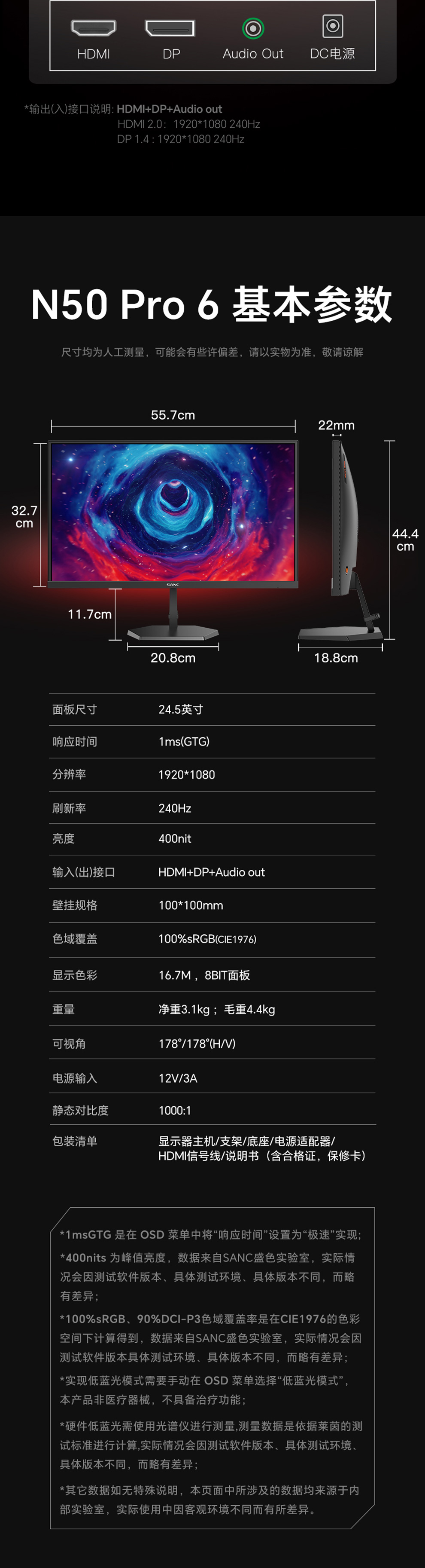 DP1.4 1920*1080       240Hz   8bit   超频300Hz