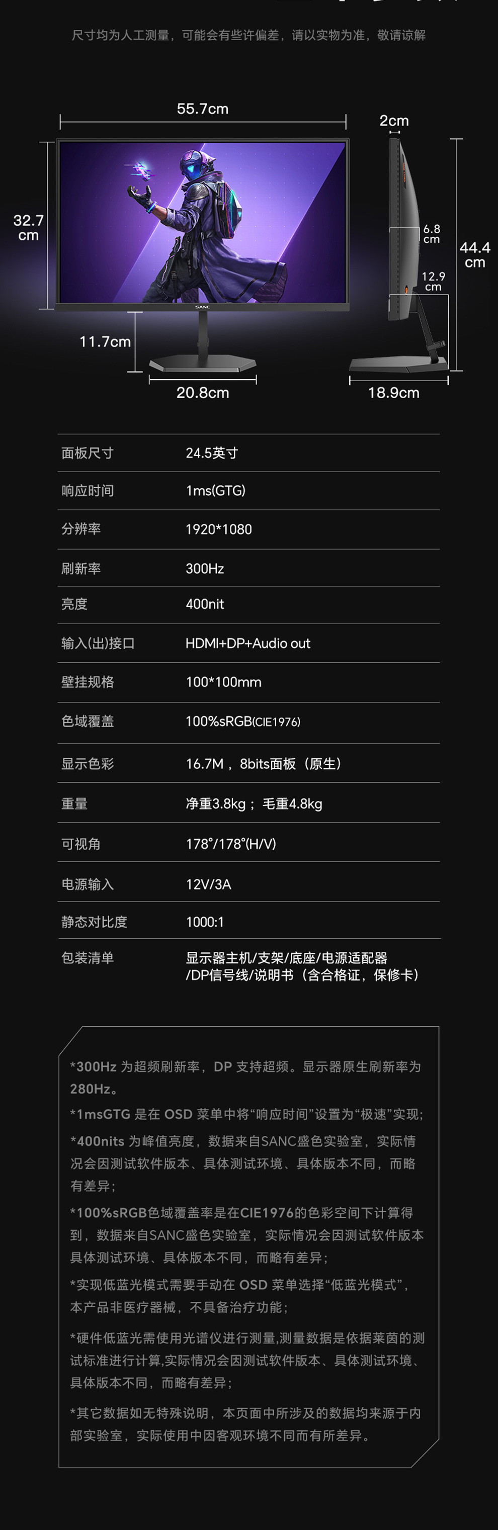 刷新率:超频300Hz(原生280Hz)